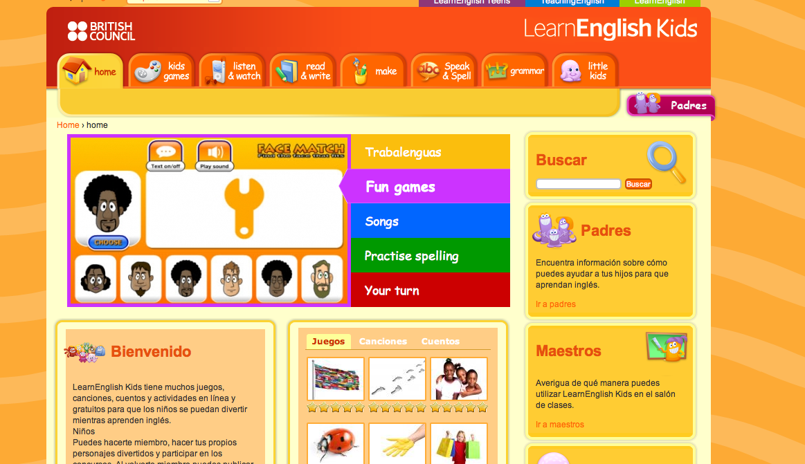 Dos buenos recursos para practicar este idioma. LearnEnglish Kids del British Council tiene muchos juegos, canciones, cuentos y actividades en línea y gratuitos para que los niños se puedan divertir mientras aprenden inglés. La web para niños http://kids.nationalgeographic.com/kids/ de la prestigiosa revista estadounidense National Geographic sirve tanto para practicar este idioma como para aprender sobre el mundo.