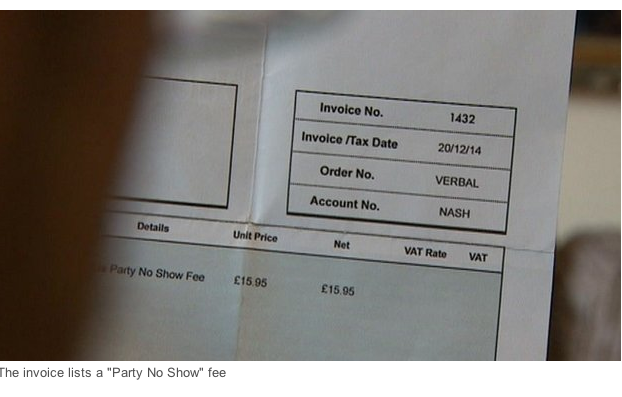 En esta se indicaba el concepto («no presentarse en la fiesta»), el importe (15.95 libras esterlinas) y los detalles de la cuenta bancaria de la madre del niño de la fiesta. Al parecer, el festejo la había dejado sin blanca y, si no pagaban, tomaría acciones legales.