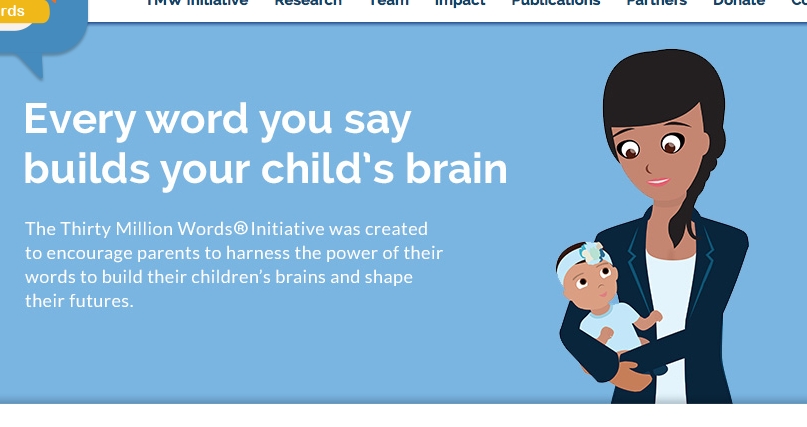 «Cada palabra que dices, construye el cerebro de tu hijo»: imagen de la página web de la iniciativa THIRTY MILLION WORDS