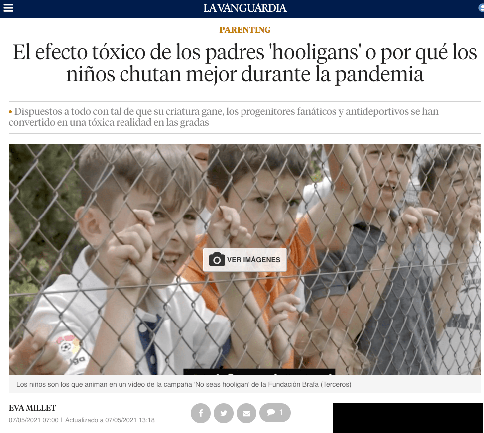 Con este título publiqué en la sección de Parenting de LA VANGUARDIA MAGAZINE este artículo sobre los padres hooligans; un tipo de hiperpadre que detesto, por su alta toxicidad. No se los ha echado de menos, durante las restricciones de público por la pandemia. De hecho, el deporte infantil ha ido mejor que nunca. Os comparto el tema también por el blog. No os perdáis el testimonio del joven árbitro.