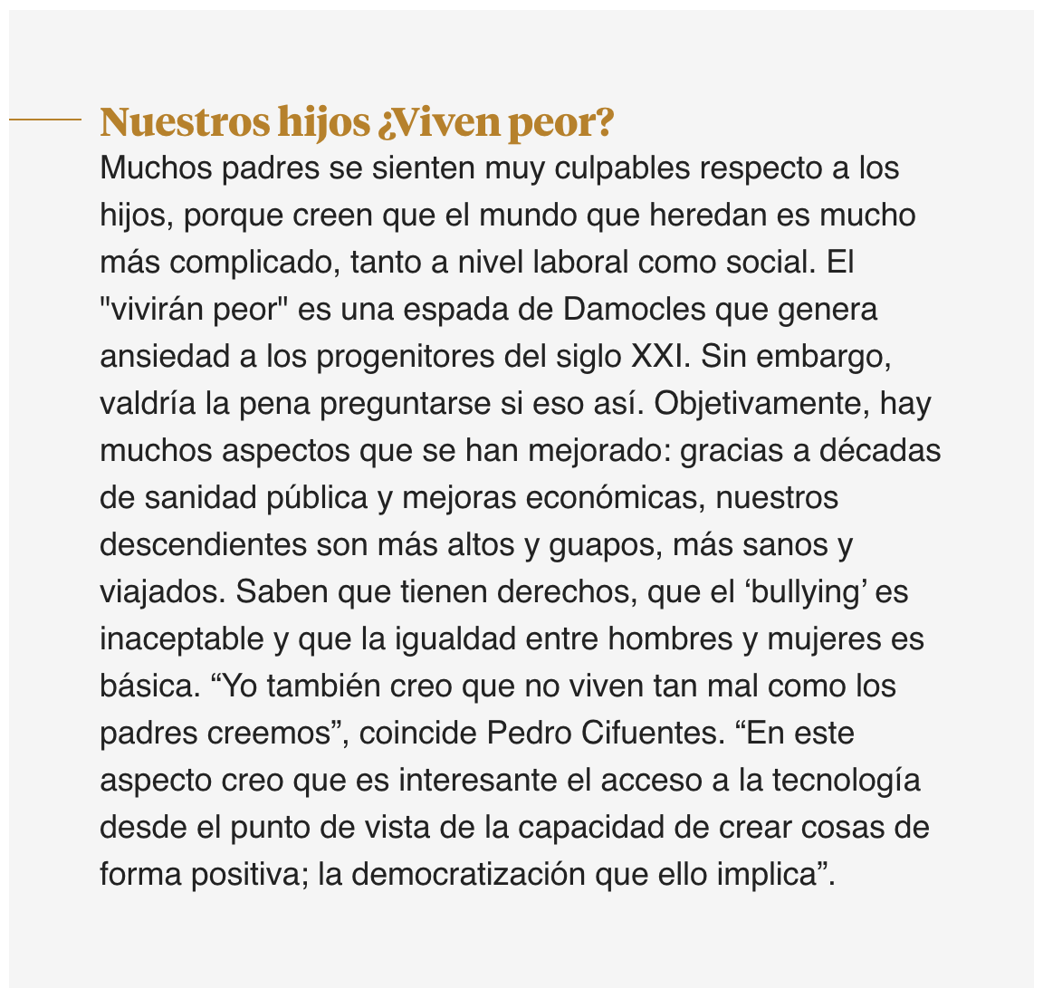Bueno, más que en el estoicismo, creo que hay educarles en la justicia social. Hay que plantearles las consecuencias de sus actos como consumidores, que algunos tan sencillos como comprar una camiseta pueden repercutir en un tema de contaminación o de injusticia social y laboral en otro país. Están capacitados para entender estas interdependencias del mundo en el que vivimos.