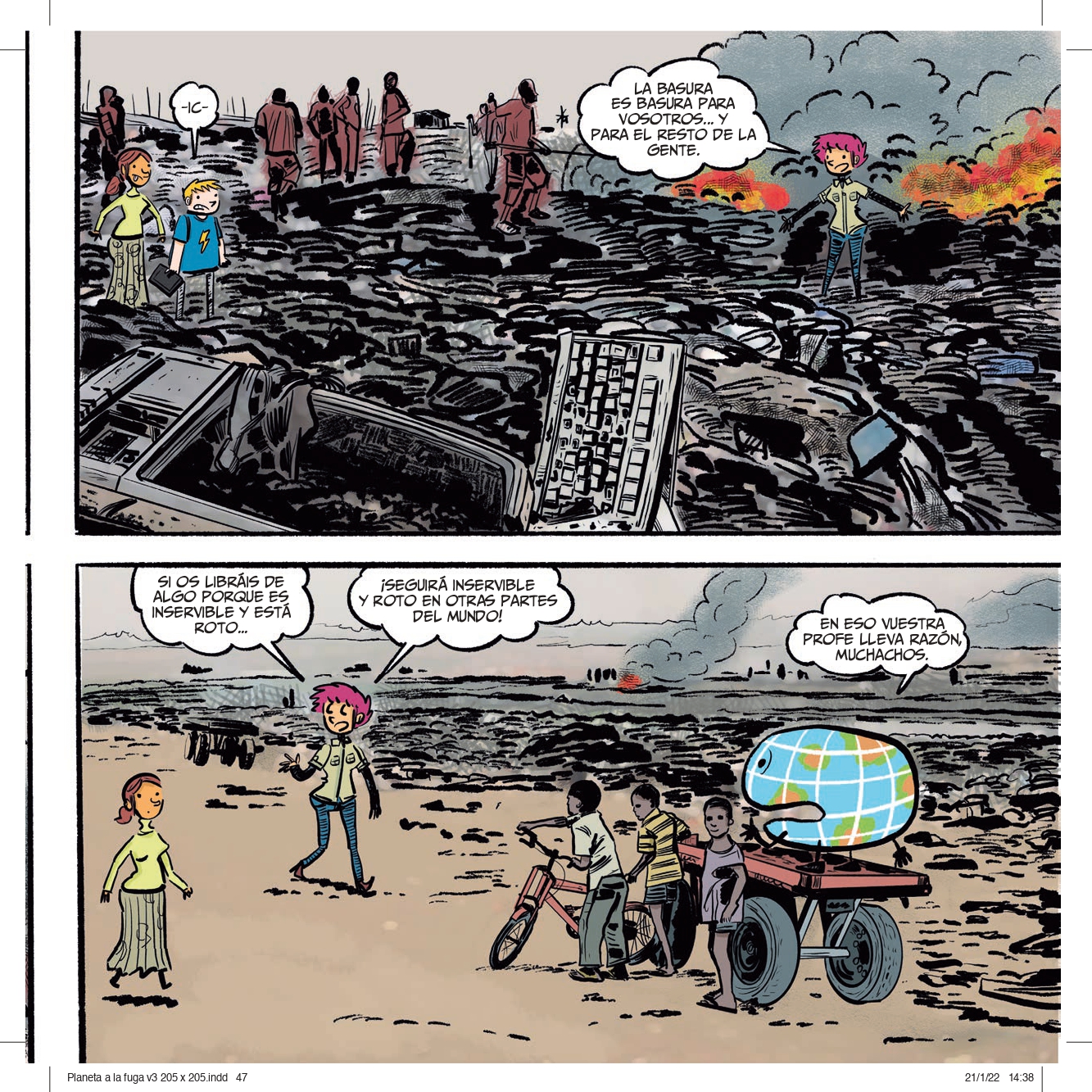 Ante este panorama, resulta cada vez más complicado educar a los hijos con un cierto optimismo ante el futuro. Por eso es reconfortante el discurso de Pedro Cifuentes, profesor de Ciencias Sociales de un instituto de Valencia. Su labor didáctica mereció, en 2010, el premio Nacional de Educación para el Desarrollo, lo que le dio la oportunidad para divulgar más allá de las aulas de Secundaria. Para ello ha utilizado una herramienta, el cómic: su serie Instrucciones para salvar el mundo (ed. Plan B) está dedicada a explicar a los más jóvenes los Objetivos de Desarrollo Sostenible de la ONU. Una muestra, según él, de que el planeta puede salvarse.