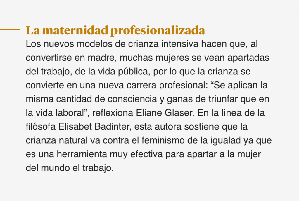En su libro aborda la idealización de la llamada crianza “natural” —que también está creciendo en España—, un estilo que implica, entre otros, el parto sin anestesia, el contacto exhaustivo con el niño y la lactancia prolongada y a demanda. ¿Cómo explica este fenómeno, en el siglo XXI?
