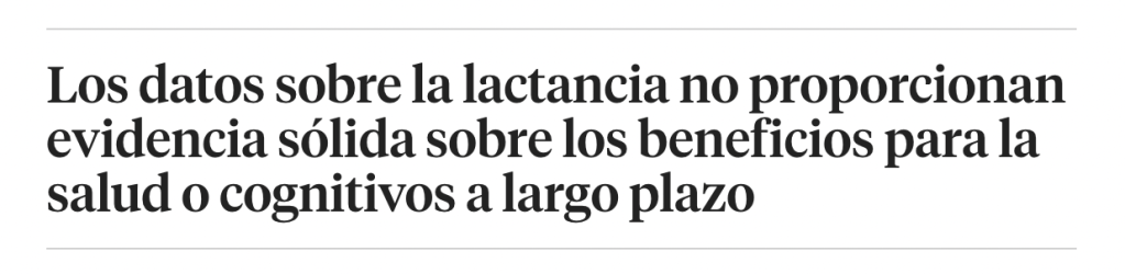 La frase: “Varios estudios ponen en evidencia” tendría que dar por finalizada la discusión. Sin embargo, existe una amplia literatura que los cuestiona. Sus autoras suelen ser mujeres, preocupadas por el determinismo que rodea el tema de la lactancia materna.