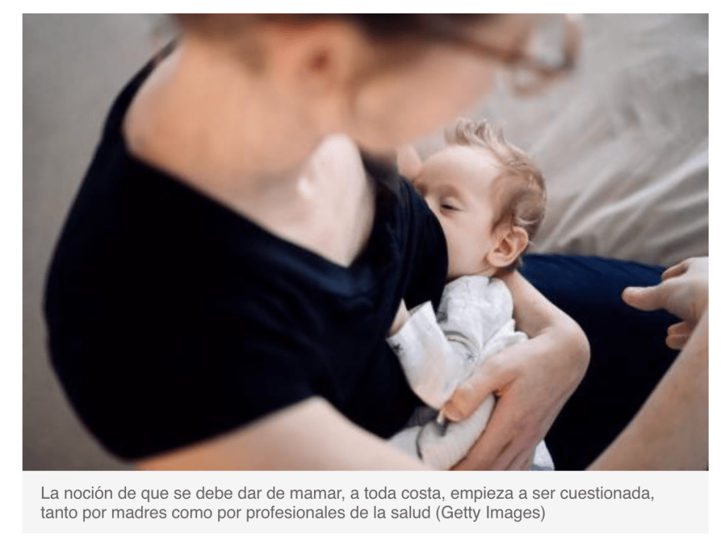 La noción de que se debe dar de mamar, a toda costa, empieza a ser cuestionada, tanto por madres como por profesionales de la salud. Son voces aisladas y algunas han recibido respuestas furibundas. Es el caso del doctor José Maria González Cano, exjefe del servicio de Pediatría del Hospital General de Castellón quien, en 2015 escribió un libro Víctimas de la lactancia materna ¡Ni dogmatismos ni trincheras! (Ediciones intrépidas), donde argumentaba que en países desarrollados, como España, no es necesaria una lactancia tan intensiva y prolongada. El médico sostenía que la presión por dar el pecho ha derivado en una obsesión, que puede perjudicar tanto al bebé como a la madre.