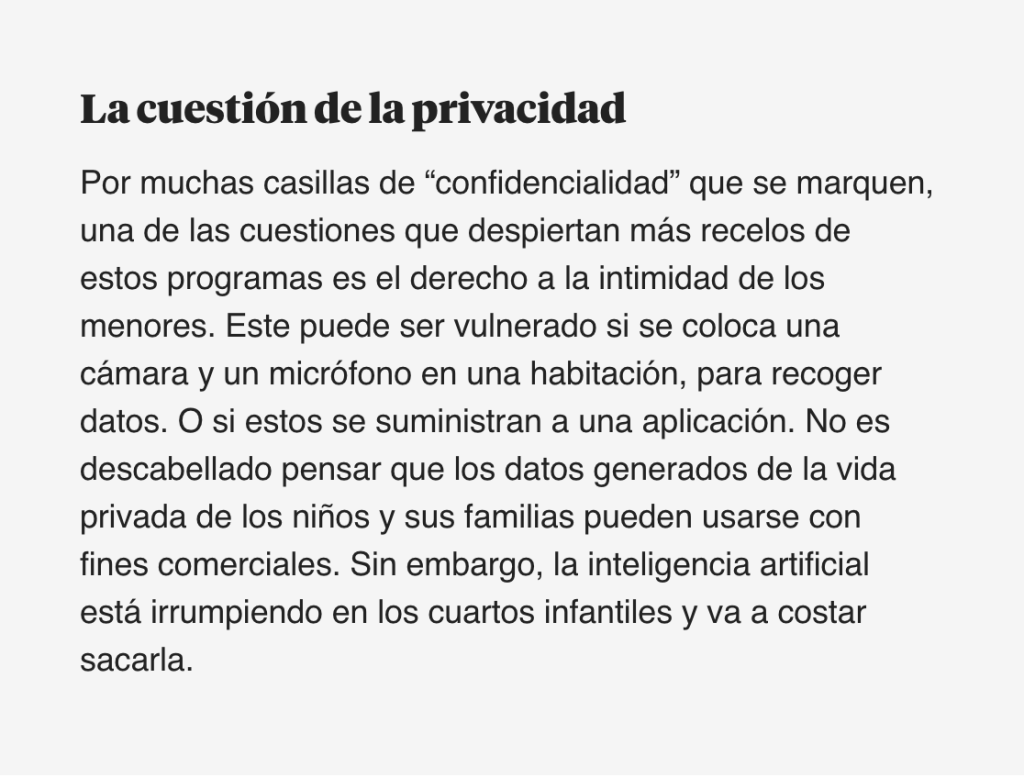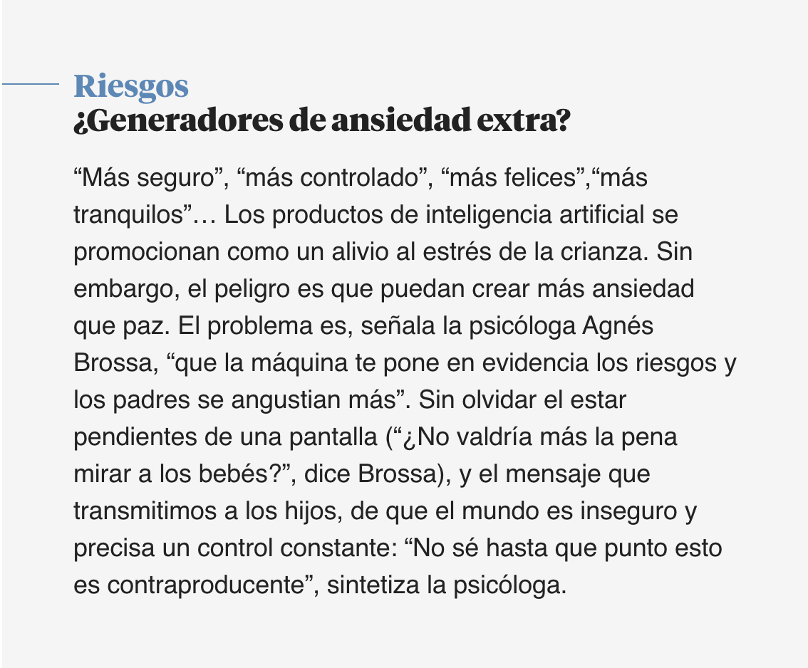 «Máquinas que saben por qué llora tu bebé: así es la crianza de la inteligencia artificial»: este es el título del artículo publicado en La Vanguardia, donde desgrano las aplicaciones que existen en el mercado y que utilizan la inteligencia artificial para la crianza: de aplicaciones para distinguir el llanto a cunas inteligentes, que controlan el sueño de los bebés, pasando por robots que hablan de emociones a los niños. Pero la pregunta es si esta tecnología es aliada, sustituta, o un nuevo generador de ansiedad. Pasen y lean. Aquí está el link al reportaje y, a continuación, el texto: