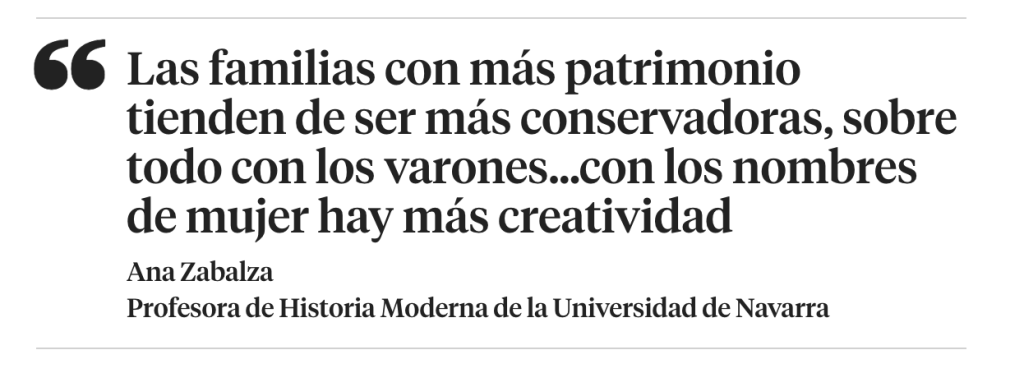 De todos modos, los nombres clásicos sobreviven. En especial, entre las clases más altas: “Es evidente que los nombres varían según la condición social, y que las familias que tienen más patrimonio, tienden de ser más conservadoras. Sobretodo, en los nombres masculinos: con los nombres de mujer hay más creatividad”, explica Zabalza.