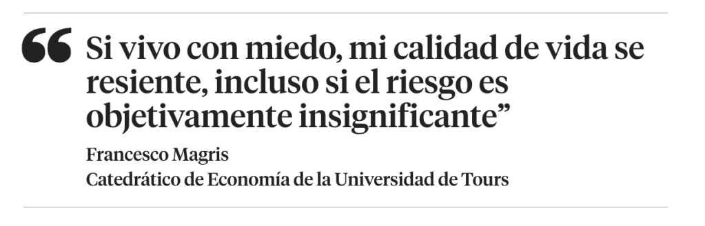“Por un lado, la percepción de que el futuro será peor que el pasado es propia de una visión conservadora de la sociedad, que se opone a la idea progresista de un desarrollo perpetuo, gracias a la ciencia y a la técnica y, también, a la expansión de la conciencia personal y colectiva”, apunta Francesco Magris. Sin embargo, este catedrático de Economía de la Universidad de Tours, matiza que esta percepción también refleja “un sano pragmatismo”, cuando está respaldada por los datos. En este caso, cree que hay una mezcla de ambos, de datos y de alarmismo y, este último, dice, puede ser muy tóxico: “Porque, fundamentadas o no, estas percepciones catastrofistas impactan el bienestar: si tengo miedo de ser atacado o robado cuando salgo de casa, la calidad de mi vida se resiente, incluso si el riesgo es objetivamente insignificante.… Keynes ya hablaba de «profecías autocumplidas”, concluye el economista.