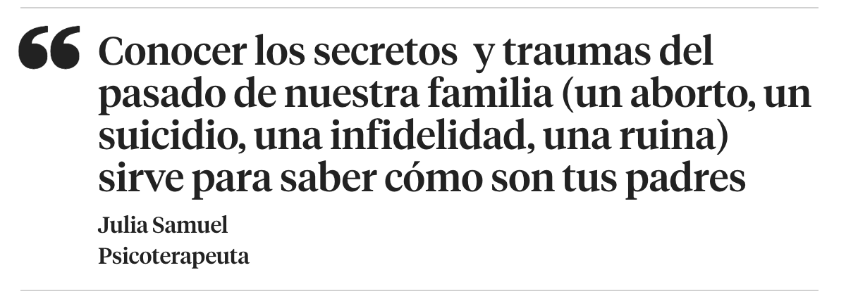 Sí, y aunque no es la solución definitiva, saber qué ha pasado en nuestra familia, esos secretos del pasado que nadie ha enfrentado (traumas como un aborto, un suicidio, ir a prisión, una infidelidad, una ruina, sufrir una guerra…), entender estas pérdidas y tener compasión, sirve para entender lo que pasa en la familia, saber cómo son tus padres. Eso nos da una base firme que nos ayudará.