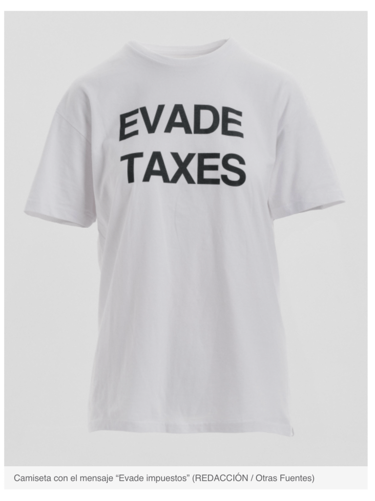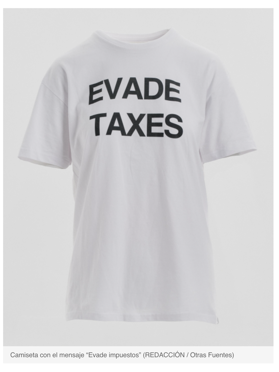 El pasado otoño, en la cola del AVE de Barcelona a Madrid, me quedé ojiplática cuando vi a una joven —muy guapa y moderna ella—, luciendo una camiseta blanca con el siguiente mensaje: EVADE TAXES, en grandes letras negras.